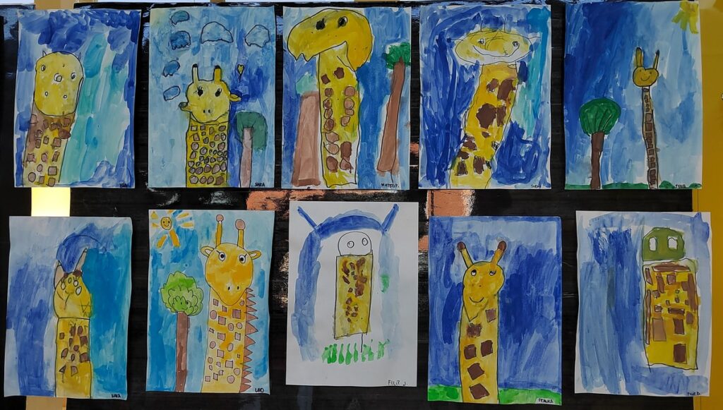 Vrtićka skupina “Bubamare” u sklopu svojih likovnih aktivnosti radila je na teme “Žirafa” – kombiniranom tehnikom i na temu “Krizantema”. Pogledajte naše radove: